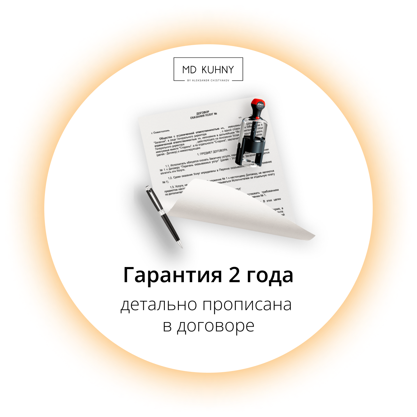 Доставляем кухню в удобное для вас время. Сборка и установка происходят точно в установленные сроки в договоре. Предоставляем гарантию 2 года